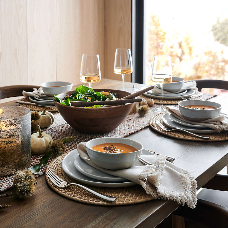 Handcrafted of 100% rattan, the Artesia natural charger is woven in a pattern known as hapao, for Crate & Barrel