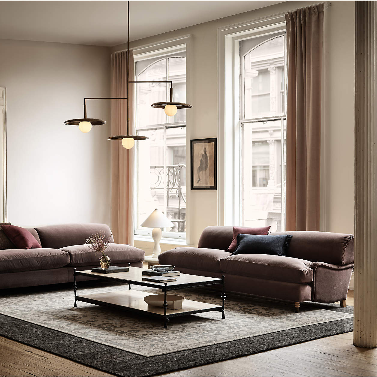 A stately coffee table by Jack Arnold for Crate&Barrel. Inspired by French modernist design of the 1940s, our Estate coffee table refines the rustic character of cast metal with sculptural detailing and the contrast of sleek marble.