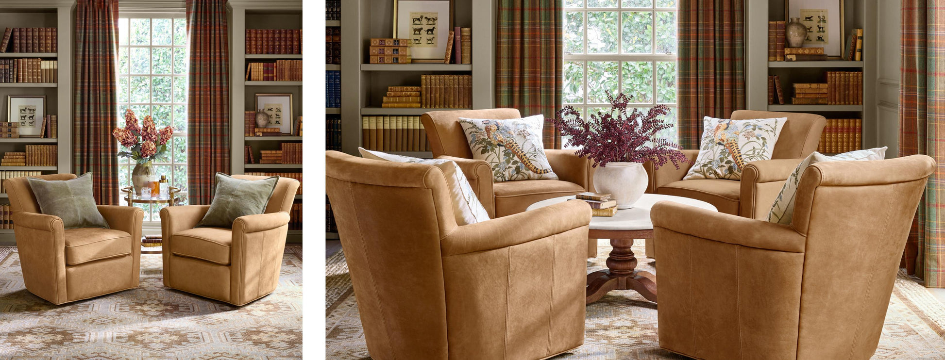 Irving Roll Arm Leather Swivel Chair