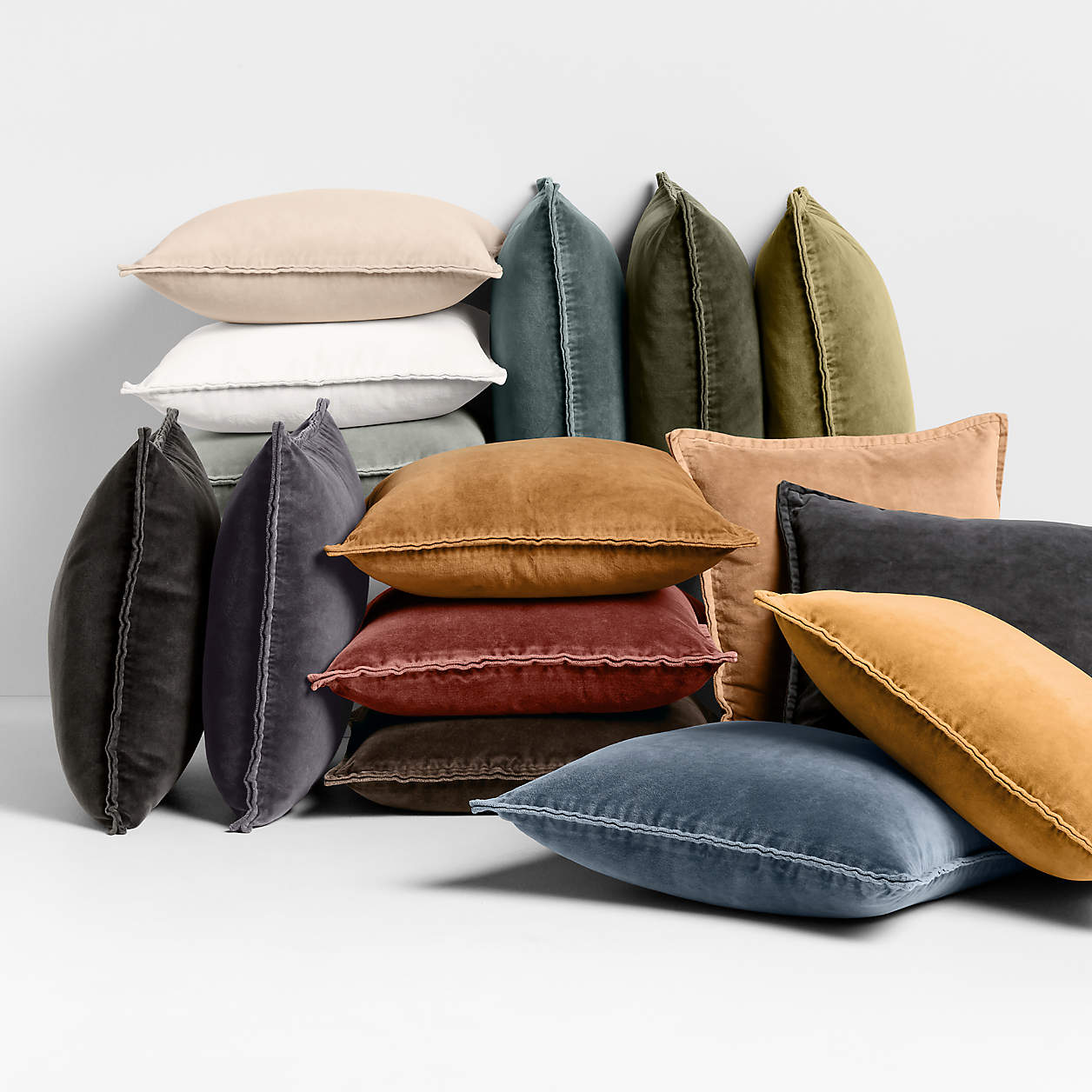 Relaxed yet refined Washed Organic Cotton Velvet 20x20" Deep Blue Sea Throw Pillow Cover, perfect for all seasons! Can be personalized with up to 3 letters, for a small fee. Click buy button for pricing and other color options through Crate & Barrel.